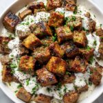 These Air Fryer Salmon Bites with Garlic Cream Sauce are a quick and delicious appetizer or light meal option. Tender salmon cubes are perfectly air fried to a golden brown and served with a rich, garlicky cream sauce that adds a luscious flavor boost. Ready in just 20 minutes, this recipe combines the health benefits of salmon with easy preparation, making it perfect for busy weeknights or entertaining guests.