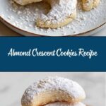 Almond Crescent Cookies are delicate, buttery cookies with a hint of vanilla and almond extract, finely chopped almonds, and a dusting of confectioners’ sugar. These crescent-shaped cookies are crisp on the outside, tender inside, and perfect for holiday baking or any special occasion.