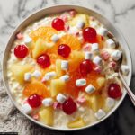 Next, toss in the mini marshmallows, pineapple chunks, mandarin oranges, shredded coconut, maraschino cherries, and if you’re using them, the chopped nuts. Each ingredient brings its own burst of flavor and texture, making every bite exciting and layered. Gently fold these into the creamy mixture, making sure everything is evenly coated without squashing the delicate fruit.