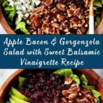 A vibrant and flavorful Apple Bacon & Gorgonzola Salad featuring crisp mixed greens, sweet apple slices, crispy bacon, tangy Gorgonzola cheese, and toasted nuts, all drizzled with a sweet and tangy balsamic vinaigrette. This salad is perfect for a light lunch or as a gourmet side dish, combining a variety of textures and flavors that delight the palate.