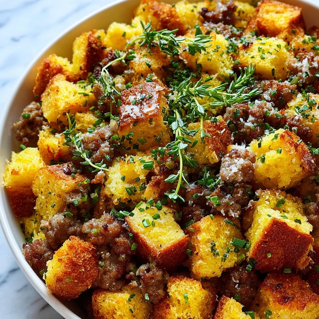 This Apple Sausage Stuffing recipe combines savory Italian sausage with crisp Granny Smith apples and fresh herbs to create a flavorful and moist stuffing perfect for holiday meals. Toasted bread cubes provide a sturdy base that absorbs the delicious broth and egg mixture, while baking ensures a golden, slightly crispy top with a tender interior bursting with vibrant flavors.