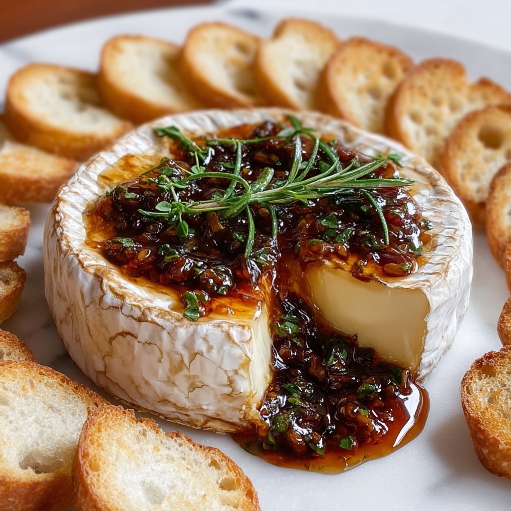 This elegantly simple appetizer pairs wonderfully with crisp apple slices, pear wedges, or lightly dressed mixed greens that freshen the palate. Toasted baguette slices or crackers are essential for scooping up every last bit of melted Brie and fig jam.