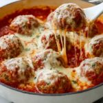 Slide your dish into the oven and bake for 25 to 30 minutes. The meatballs should reach an internal temperature of 165°F (74°C) to ensure they’re cooked safely. During this time, the sauce will thicken slightly and the cheese melts into a golden, bubbly blanket. It’s pure comfort food magic.