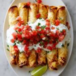 To impress guests, arrange your taquitos standing upright in a serving dish, garnished with vibrant salsas and sliced jalapeños. For a casual twist, serve them with mini dipping bowls filled with spicy queso or creamy avocado crema for everyone to indulge in dipping fun.