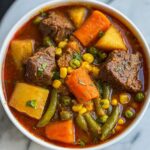 A hearty and comforting Beef Vegetable Soup made with tender stew beef, fresh vegetables, and aromatic herbs simmered to perfection. This classic American soup is perfect for warming up on chilly days and offers a nutritious, gluten-free meal option.