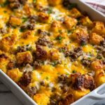 This Biscuits and Gravy Hashbrown Breakfast Casserole combines classic breakfast flavors into a hearty, comforting dish. Ground breakfast sausage, flaky biscuit pieces, crispy hashbrowns, and shredded cheddar cheese are layered and baked with a rich egg and milk mixture, creating a satisfying morning meal perfect for family breakfasts or brunch gatherings.
