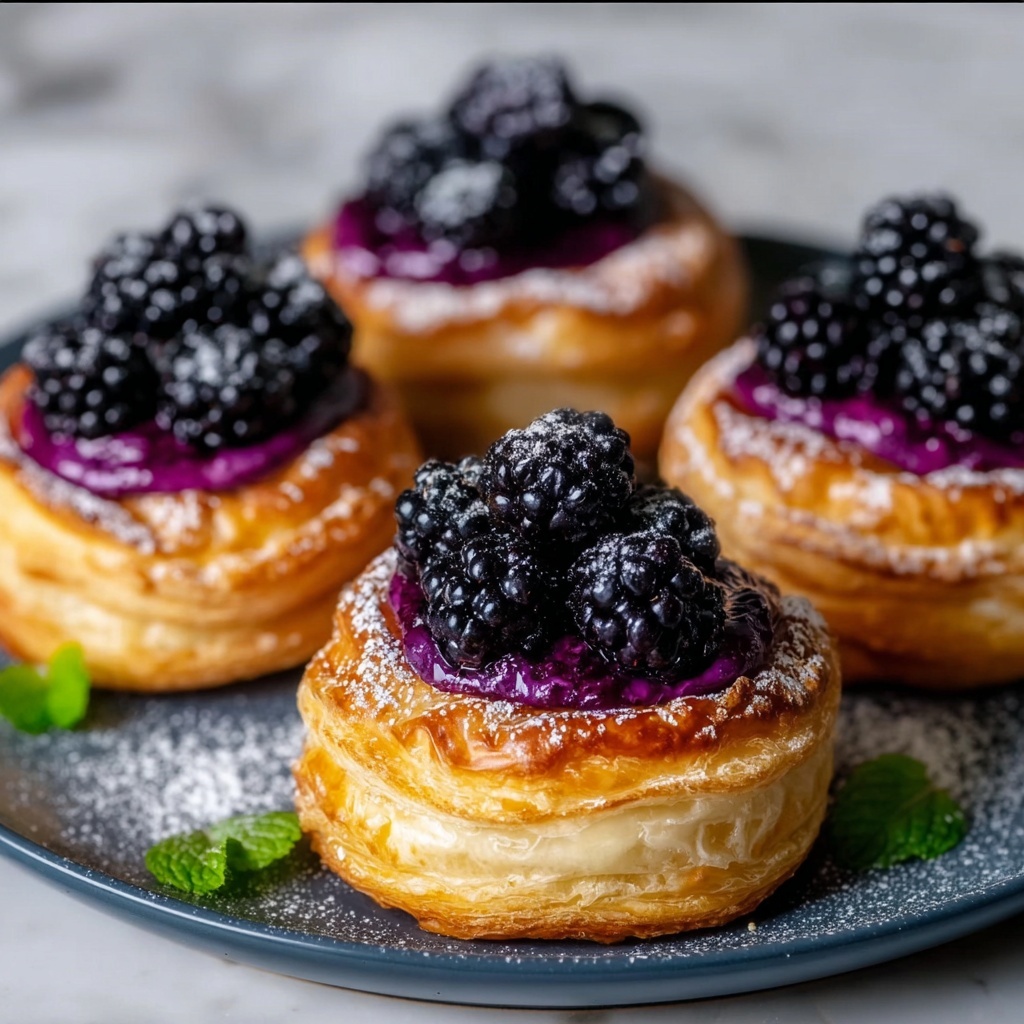 A delightful Blackberry Cream Cheese Danish that combines flaky puff pastry with a luscious cream cheese filling and fresh blackberries, perfect for a brunch treat or elegant dessert.