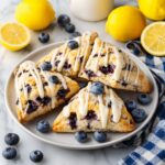 Delight in these moist and tender Blueberry Scones with a zesty Lemon Glaze, perfect for a breakfast treat or a sweet dessert. Bursting with fresh blueberries and a hint of lemon zest, these scones combine flaky buttery layers with a bright, citrusy finish that complements the natural sweetness of the berries.