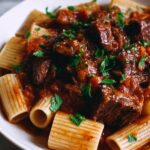 This Braised Short Rib Ragu Pasta recipe is a hearty, comforting dish featuring tender, slow-braised beef short ribs simmered in a rich tomato and red wine sauce. Paired with a wide, hearty pasta like pappardelle or tagliatelle, it offers an incredible depth of flavor perfect for a special family meal or dinner party.