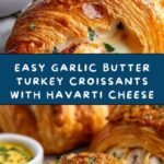 Feeling fancy? Slice the croissants diagonally and arrange them on a platter for a charming appetizer presentation. Drizzle a little extra honey around the plate and add small bowls of additional apricot jam and honey mustard for dipping. This turns your Buttery Garlic Baked Croissants with Turkey & Havarti Recipe into an irresistible spread that guests will adore.