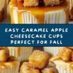 These Caramel Apple Cheesecake Cups combine a buttery pecan cookie base with a creamy cheesecake filling, topped with warm caramelized spiced apples and drizzled with rich caramel sauce. Perfectly portioned as mini cheesecakes, they are a delightful dessert that blends tart apples, sweet caramel, and smooth cheesecake in every bite.