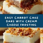Delicious and moist carrot cake bars topped with smooth, creamy cream cheese frosting, perfect for an easy homemade dessert or snack. These bars combine warm spices, grated carrots, and crushed pineapple for added moisture and flavor, finished with a luscious frosting that makes every bite irresistible.