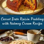 This Carrot Date Raisin Pudding with Nutmeg Cream is a delightful and moist dessert combining the natural sweetness of dates and raisins with the warm flavors of cinnamon and nutmeg. The pudding is perfectly balanced with grated carrots and a light brown sugar sweetness, baked to perfection, and topped with a creamy nutmeg-infused whipped cream for an indulgent finish. Ideal for cozy gatherings or as a comforting treat.