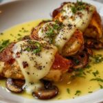 This Cheesy Garlic Butter Mushroom Stuffed Chicken recipe features tender boneless chicken breasts filled with a savory blend of sautéed mushrooms, garlic, and a trio of cheeses. After searing for a golden crust, the chicken is baked to perfection, delivering a rich, flavorful dish perfect for a comforting dinner.