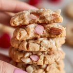 Fresh cherries have more moisture and less sweetness than maraschino cherries, so it’s best to stick with maraschino for this recipe to maintain the right texture and sweet bursts throughout the cookies.