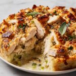Cover the casserole tightly with aluminum foil and bake for 25-30 minutes. Then remove the foil and keep baking for another 10-15 minutes until the chicken hits a safe internal temperature of 165°F and the stuffing turns a gorgeous golden brown on top. This two-stage baking locks in moisture while still allowing you to finish with a crispy, eye-catching crust.