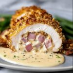 This classic Chicken Cordon Bleu recipe features tender chicken breasts stuffed with savory ham and melted Swiss cheese, coated in a flavorful seasoned breadcrumb crust, and baked to golden perfection. Served with a creamy Dijon mustard sauce, it’s a perfect dish for an elegant dinner or a comforting family meal.