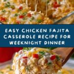 This Chicken Fajita Casserole is a delicious and easy weeknight meal that layers seasoned chicken, sautéed bell peppers and onions, creamy cheeses, and tangy diced tomatoes with green chilies in a baked tortilla casserole. Combining classic fajita flavors with a creamy sauce and melted cheese topping makes this dish comforting and satisfying for the whole family.