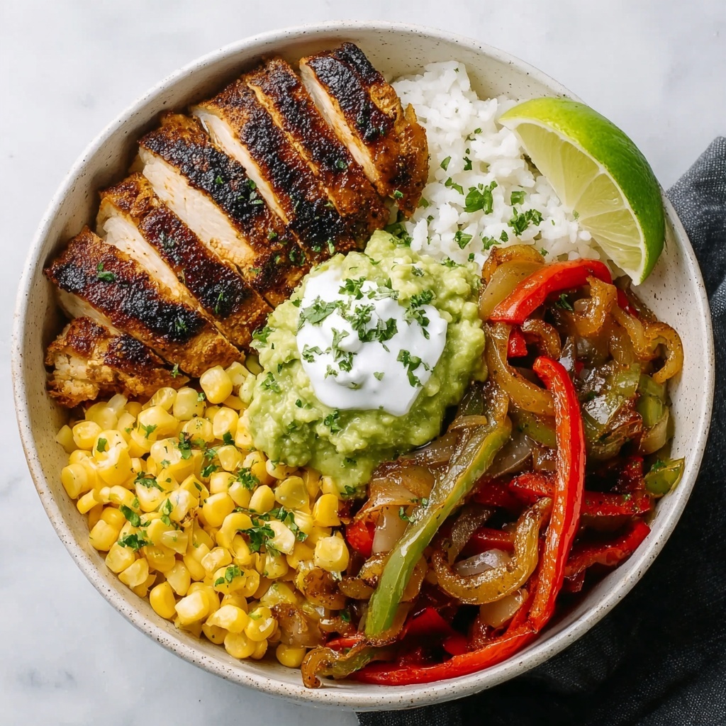 Return the cooked chicken to the skillet with the peppers and onions, tossing quickly to let the flavors marry and to reheat the chicken gently. Squeeze half a lime over the mixture and give it one last toss to add a zesty brightness that lifts the whole dish. The sizzling sound and intoxicating aroma tell you the Chicken Fajita Rice Bowls Recipe is ready to be plated and enjoyed.