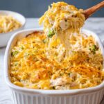 This comforting Chicken Noodle Casserole combines tender shredded chicken, creamy sauce, and tender egg noodles baked to perfection with a crispy buttery cracker topping. Perfect for an easy weeknight dinner, this dish is kid-friendly, satisfying, and packed with classic American flavors.
