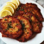 This Chicken Schnitzel recipe features tender, pounded chicken breasts breaded with a seasoned breadcrumb mixture and pan-fried to a golden, crispy perfection. A classic German main course that pairs beautifully with lemon wedges and your favorite sides like potato salad or greens.