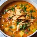This Chicken Tortilla Soup is a comforting Mexican-inspired dish that’s easy to make and packed with flavor. Featuring tender shredded chicken, black beans, corn, and a blend of smoky spices, it is perfect for a cozy weeknight meal. Topped with crispy tortilla strips, creamy avocado, shredded cheese, and a squeeze of lime, this soup balances warmth and freshness in every bowl.