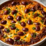 This Chili Cheese Dog Casserole is a comforting and hearty layered dish combining sliced hot dogs, chili with beans, crispy tater tots, and a melty cheese topping. Perfect for family dinners or casual gatherings, it delivers classic American flavors with minimal prep and quick baking time.
