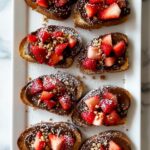 Try serving the Chocolate Strawberry Bruschetta Dessert Recipe on a rustic wooden board for a charming, casual look or arrange it on a sleek white platter for an elegant touch. You could also offer individual portions on small plates, each topped with a different garnish for a fun tasting experience.