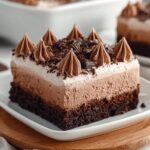 Before serving, spread a generous layer of whipped cream on top to add a light, fluffy contrast to the rich soaked cake underneath. It’s the perfect finishing touch that makes this Chocolate Tres Leches Cake Recipe truly irresistible.