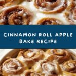 A comforting and easy-to-make Cinnamon Roll Apple Bake combining quartered cinnamon rolls with sweet apple pie filling and crunchy nuts, baked to golden perfection and drizzled with cinnamon roll icing for a delightful dessert experience.