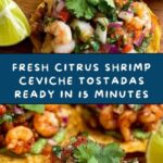 This refreshing Citrus Shrimp Ceviche Tostadas recipe combines tender shrimp marinated in zesty lime juice with fresh vegetables and creamy avocado, served on crispy tostadas for a vibrant and light appetizer or meal perfect for warm weather or gatherings.