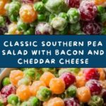 Classic Southern Pea Salad is a creamy, flavorful side dish featuring sweet peas, hard-boiled eggs, bacon or ham, cheese, and a tangy dressing made with mayonnaise and sour cream. Perfectly seasoned with black pepper, garlic powder, celery seeds, and a hint of cayenne pepper, this salad is a refreshing complement to any meal. It’s easy to prepare, requires no cooking beyond prepping the eggs and bacon, and is best served chilled after the flavors meld.