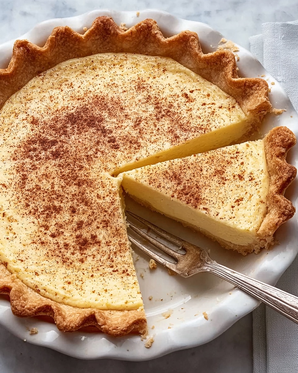 Classic Vanilla Custard Pie is a smooth, creamy dessert featuring a rich custard made from whole milk, heavy cream, eggs, and pure vanilla extract baked in a pre-baked pie crust. Perfectly balanced with a hint of nutmeg for an optional warm spice, this comforting pie is easy to prepare and great for any occasion.