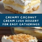 Coconut Cream Lush is a rich, creamy, no-bake layered dessert featuring a graham cracker crust, a luscious cream cheese and whipped topping layer, topped with coconut and vanilla pudding layers, all garnished with toasted shredded coconut. Perfect for coconut lovers looking for an easy and decadent treat.