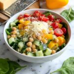 This Colorful Summer Chickpea Salad is a vibrant and refreshing dish perfect for warm days. Packed with protein-rich chickpeas and crisp vegetables, it’s dressed in a zesty lemon-herb vinaigrette and finished with a sprinkle of Parmesan cheese. Easy to prepare and chill ahead, this salad is ideal for light lunches or as a side dish at summer gatherings.
