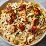 This Creamy Cajun Chicken Pasta recipe combines tender Cajun-seasoned chicken with sautéed vegetables and a rich, creamy sauce. Perfectly cooked pasta is tossed in a flavorful blend of heavy cream, chicken broth, Parmesan cheese, and a touch of heat from red pepper flakes, creating a comforting and satisfying meal ideal for weeknight dinners.