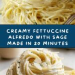 A rich and creamy Fettuccine Alfredo recipe featuring sage-infused sauce made with butter, heavy cream, and Parmesan cheese, served over perfectly cooked fettuccine pasta. This classic Italian-American dish is quick to prepare and full of comforting flavors.