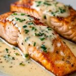 This Creamy Garlic Butter Salmon recipe offers a rich and flavorful seafood dish that’s easy to prepare and perfect for a quick weeknight dinner. Pan-seared salmon fillets are enveloped in a luscious garlic butter sauce with cream, parmesan, and a hint of lemon, creating an irresistible meal that’s both elegant and comforting.