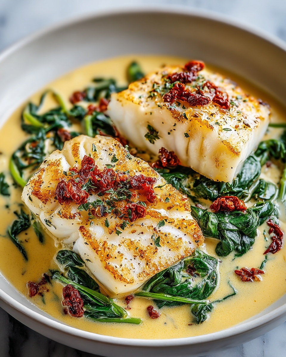 How to Serve Creamy Keto Tuscan Cod with Spinach and Sun-Dried Tomatoes Recipe