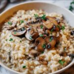 This creamy mushroom rice pairs wonderfully with grilled vegetables, roasted chicken, or a fresh green salad. It’s versatile enough to complement rich, meaty dishes or lighter meals alike. A crisp white wine or a chilled glass of sparkling water with lemon makes the perfect beverage to brighten each bite.