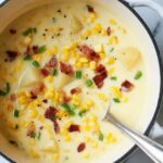Your Creamy Potato Corn Chowder Recipe is now ready to be enjoyed! Ladle it into bowls, sprinkle the crumbled crispy bacon on top, and if you like, add fresh herbs for a pop of color and freshness. It’s a soul-warming meal that feels both satisfying and special, perfect for sharing or savoring all by yourself.