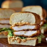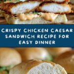 A delicious Crispy Chicken Caesar Sandwich featuring tender, buttermilk-marinated chicken breasts coated with a seasoned breadcrumb and Parmesan mixture, pan-fried to golden perfection, and served on toasted buns with crisp romaine lettuce and creamy Caesar dressing. This American main course is perfect for a satisfying lunch or dinner.