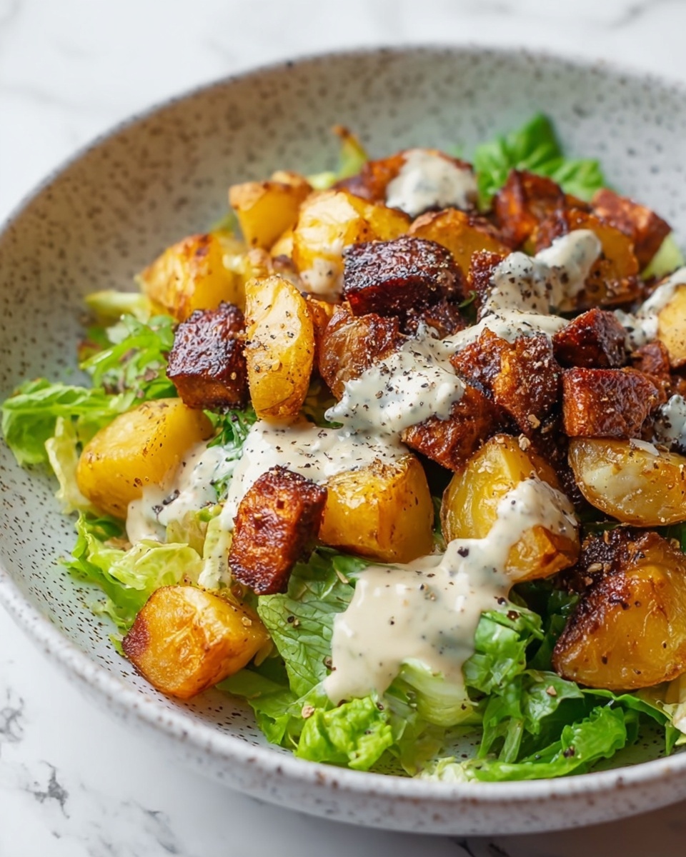 Presentation can make all the difference! Try serving your salad in individual glass bowls to show off the layers of rich potatoes and lettuce, or pile it high on a rustic wooden board for a relaxed, shareable vibe. Adding edible flowers can lend a pop of color that turns this humble salad into a showstopper for any dinner party.