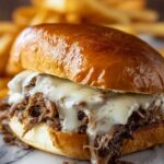 Reheat leftovers gently in a saucepan over low heat with a splash of broth to keep the meat tender. You can also warm the assembled sandwich in the oven until the cheese melts again. Avoid the microwave when possible to maintain the best texture.