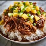 Feeling a bit adventurous? Serve the shredded chicken as a filling for soft taco shells or stuff it into warm pita bread for a fun, handheld dinner option. You can also turn this into a vibrant bowl by adding fresh mango salsa, avocado slices, and a squeeze of lime for a Hawaiian-inspired feast.