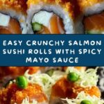 To finish, sprinkle chopped scallions and extra sesame seeds over your rolls, and drizzle any remaining spicy mayo sauce if you like. Serve your beautiful homemade Crunchy Salmon Roll Recipe with classic accompaniments like soy sauce, pickled ginger, and a dab of wasabi, and prepare to impress everyone at your table.