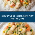 - Serve: Serve the crustless chicken pot pie hot, either as is or spooned over cooked rice for a fulfilling meal.