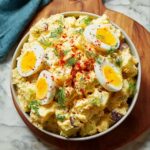 This Deviled Egg Potato Salad is a creamy, tangy twist on a classic potato salad, incorporating the rich flavor of deviled eggs for an irresistible side dish. Perfect for picnics, potlucks, or family gatherings, it combines tender potatoes, creamy egg yolk mayonnaise dressing, and dill relish for a bright, satisfying salad.