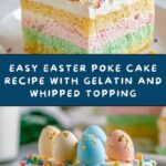 This vibrant Easter Poke Cake is a delicious and festive dessert perfect for spring celebrations. A moist vanilla cake is baked, then poked with holes and filled with colorful gelatin, creating a fun and flavorful surprise in every bite. Topped with creamy whipped topping and festive sprinkles, this cake is sure to delight both kids and adults alike.