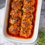 While the baking step gives the perfect texture and caramelization, you can cook the dumplings in a skillet with a covered lid on medium heat, simmered in the sauce until tender. Just be sure to watch the sauce so it doesn’t dry out.